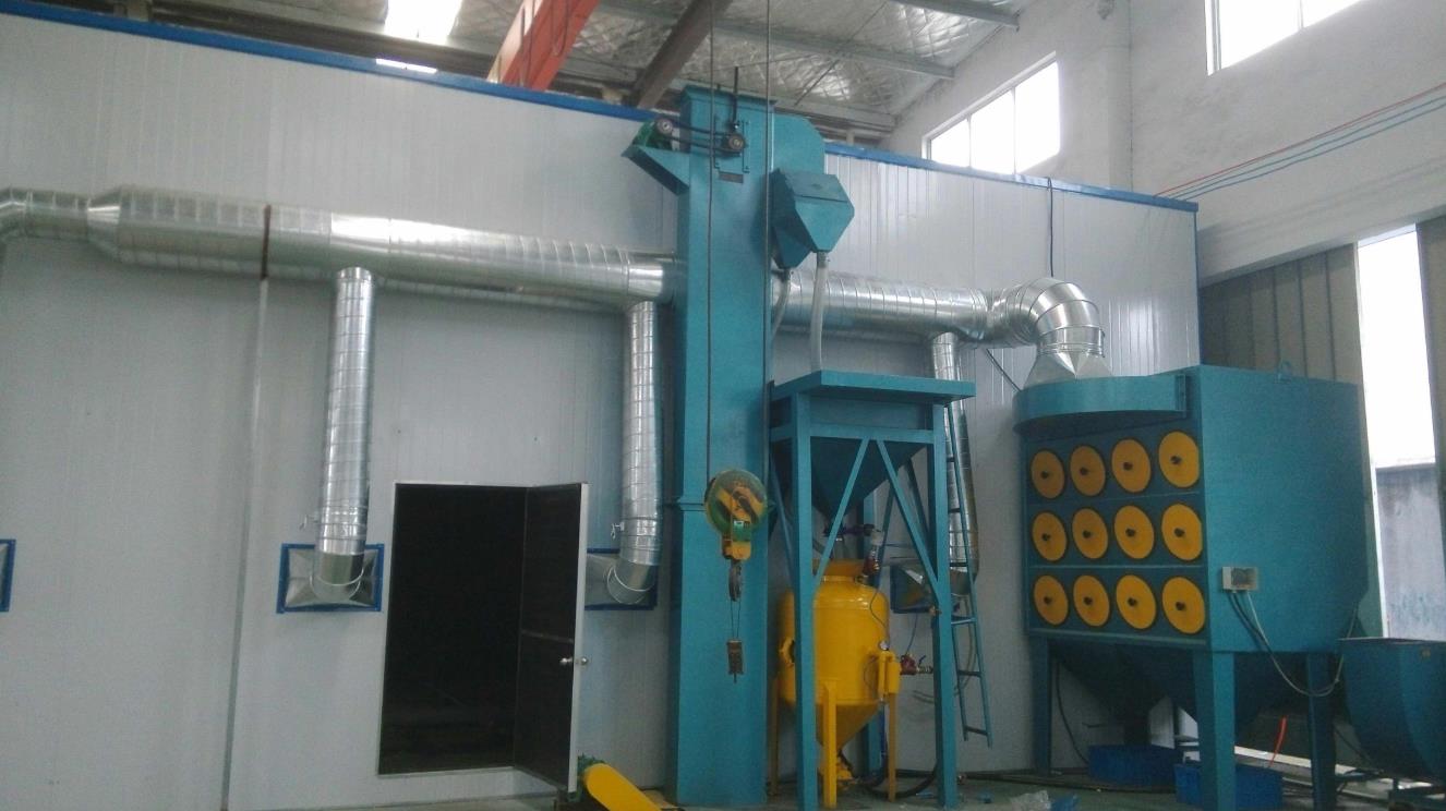 一套完善的噴砂房/噴丸房系統(tǒng)有噴砂/丸房室體、氣源系統(tǒng)、噴砂/丸系統(tǒng)、磨料回收分離系統(tǒng)、通風除塵系統(tǒng)、工件輸送系統(tǒng)、勞動防護系統(tǒng)、照明系統(tǒng)和電氣自動化控制系統(tǒng)等組成;噴砂房/噴丸房主要用于工程機械、橋梁鋼結構、重型機械、集裝箱、機車車輛、航空航天、石油石化、電力、兵器等行業(yè)的表面噴砂噴丸處理。公司采用的模塊設計,工廠預制,現(xiàn)場拼裝;結構合理、美觀,并且設計、制造周期可控制在2~3個月內。